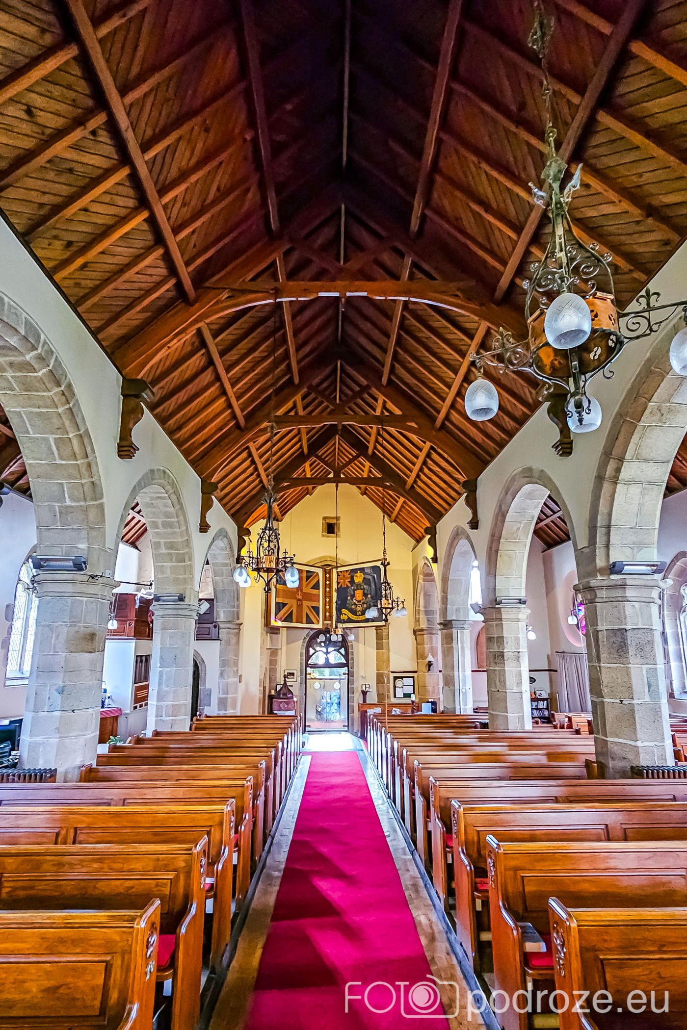 Dwa kilometry dalej na północny – wschód, już bliżej lotniska znajduje się druga warta uwagi świątynia. Kościół Św. Piotra w parafii Saint Pierre du Bois na Guernsey to jedna z najstarszych i najpiękniej położonych świątyń na wyspie. Jej początki sięgają XII wieku, a obecna struktura to efekt wielu przebudów, z zachowanymi romańskimi i gotyckimi elementami. Charakterystyczna wieża z ostrosłupowym dachem pełniła kiedyś funkcję punktu obserwacyjnego. Wewnątrz kościoła znajdują się zabytkowe witraże, historyczne płyty nagrobne oraz XV-wieczna chrzcielnica. Świątynia otoczona jest uroczym cmentarzem i tradycyjnym, kamiennym murkiem, który do dziś oddziela duchowy świat od codzienności malowniczej parafii.