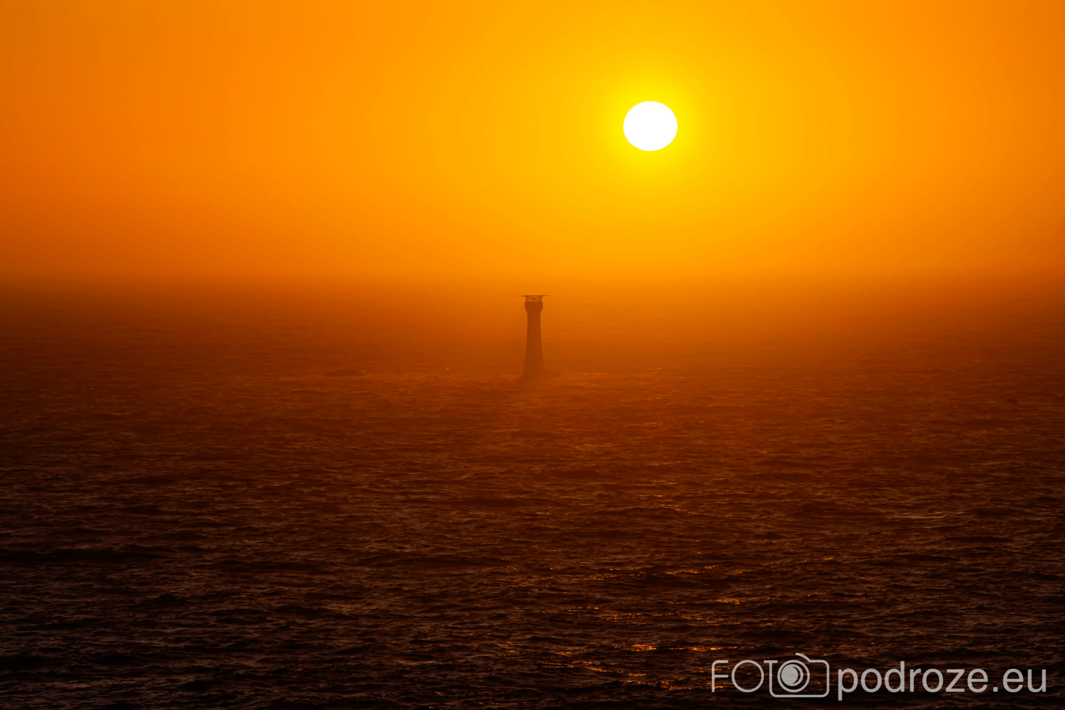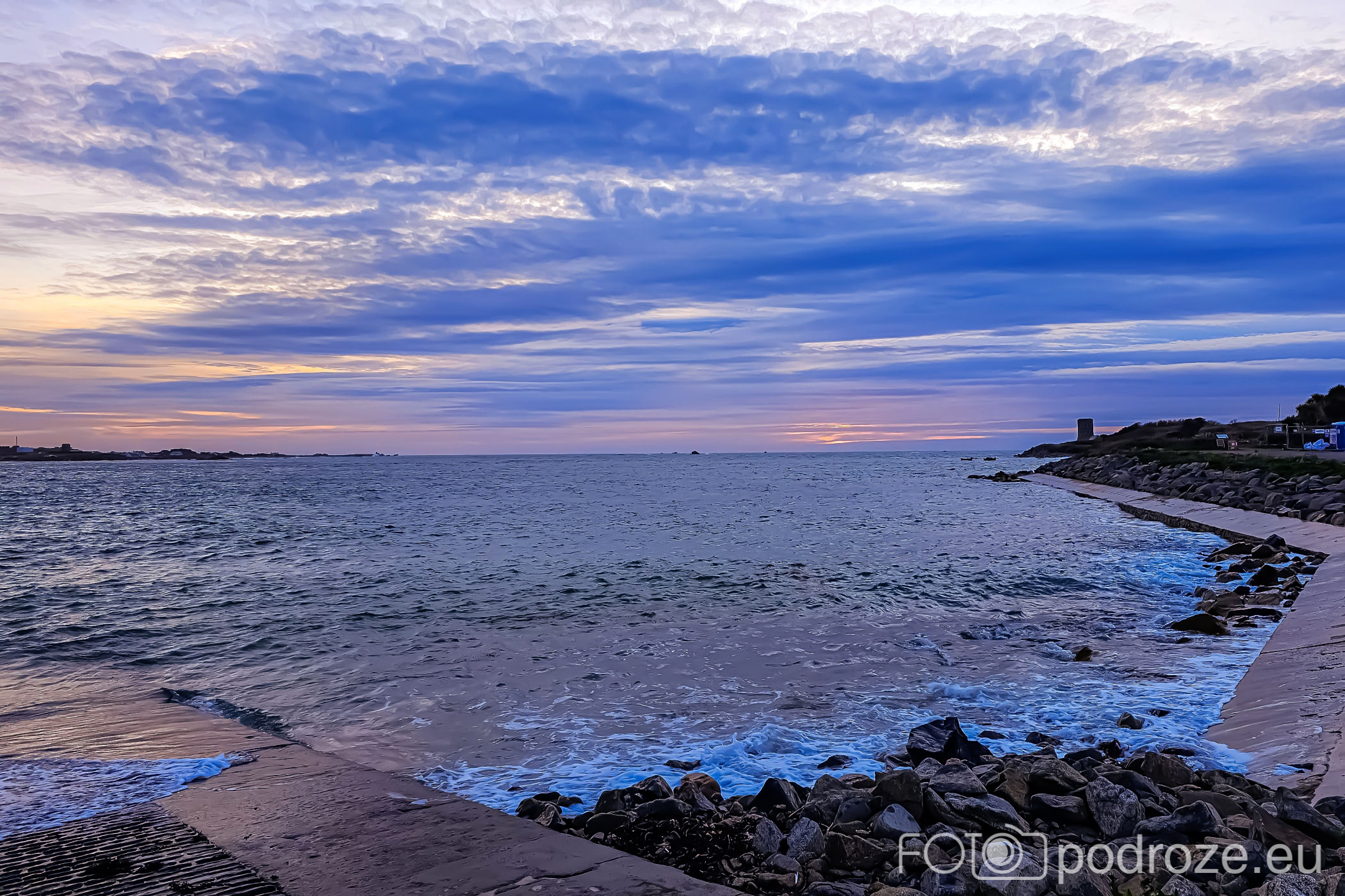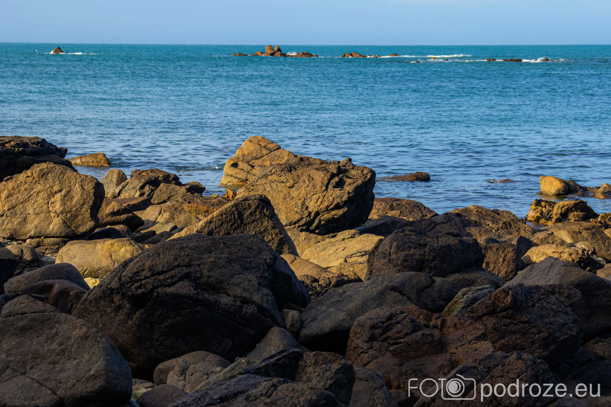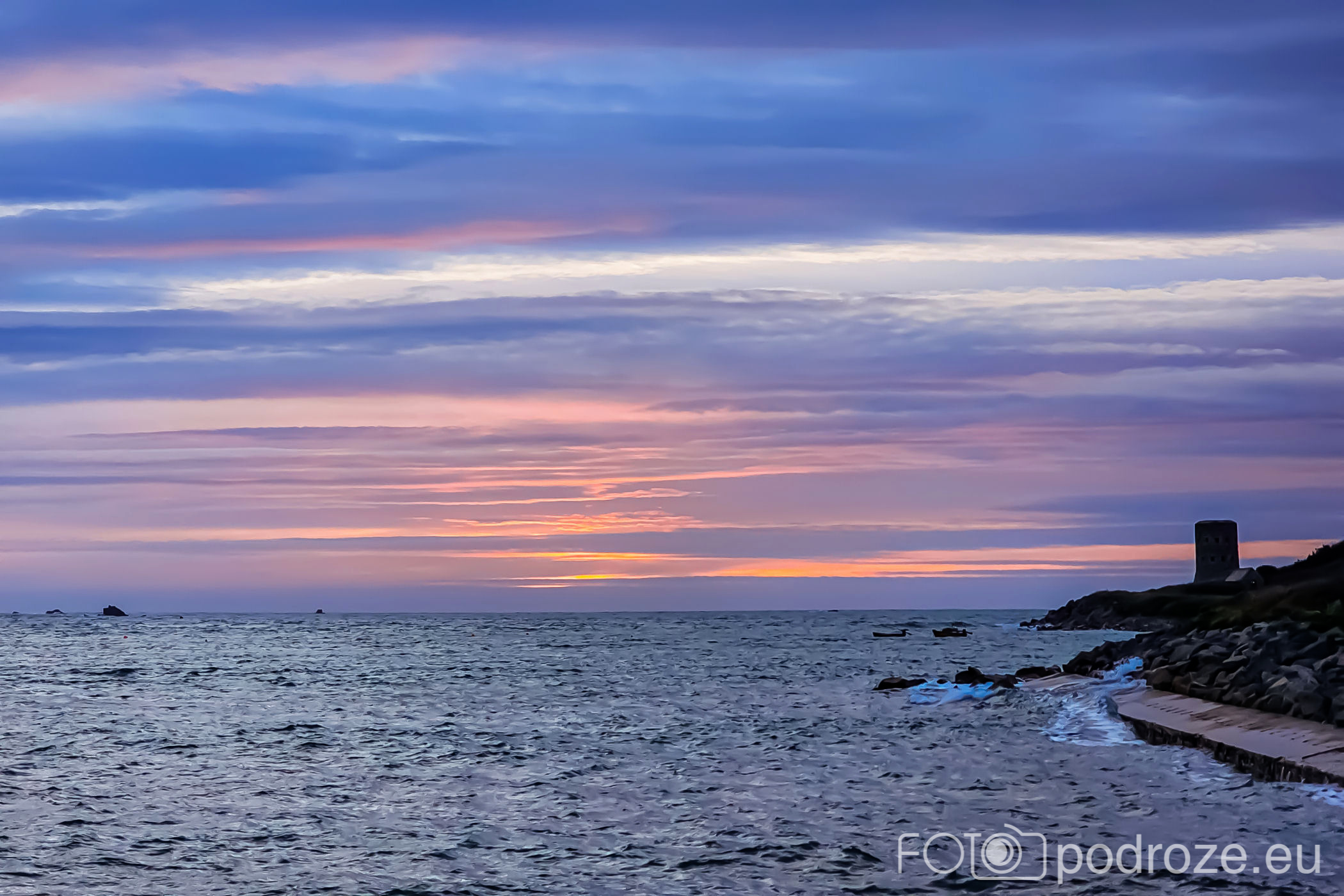 Na wschodnie wybrzeże zawitaliśmy ponownie , ale już o zachodzie słońca. Od tej strony wybrzeże jest bardziej łagodne i piaszczyste, a na końcu góruje wieża z czasów II Wojny – L’Eree Gun Battery.