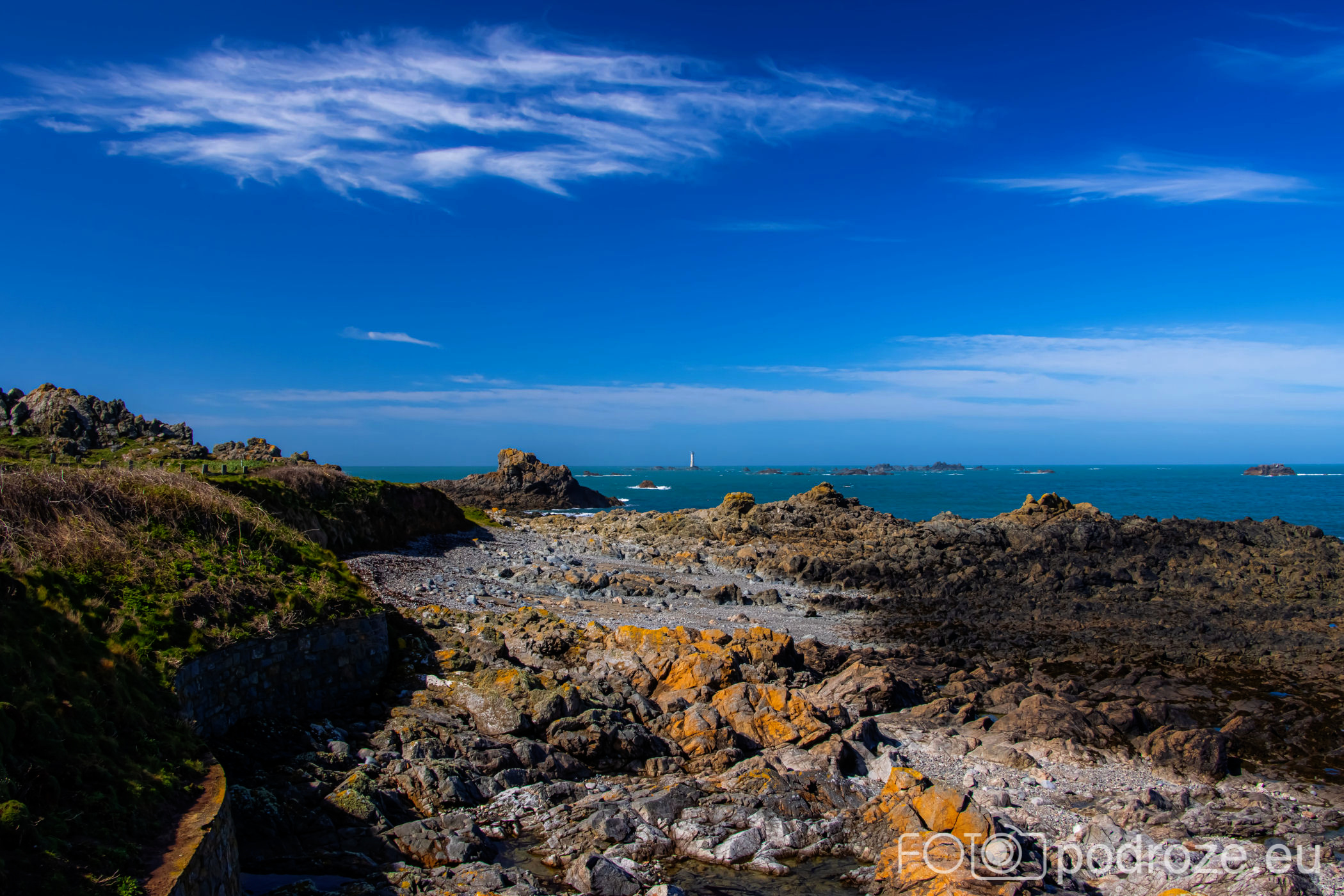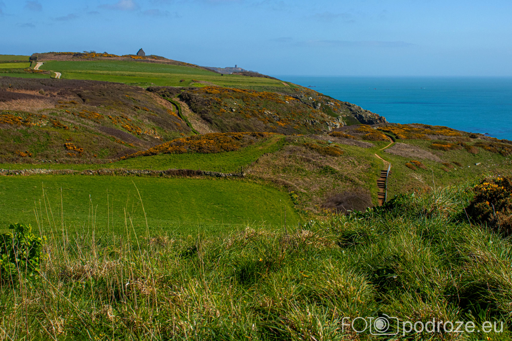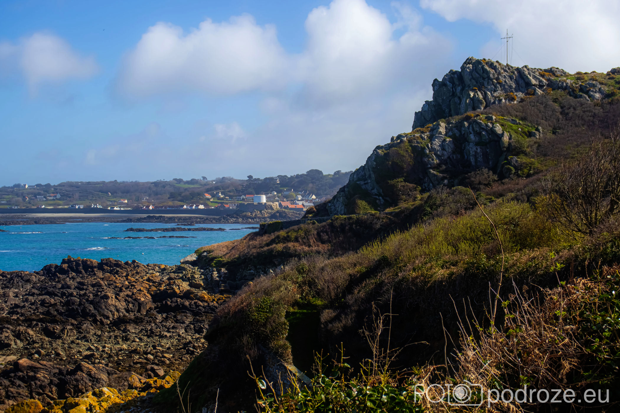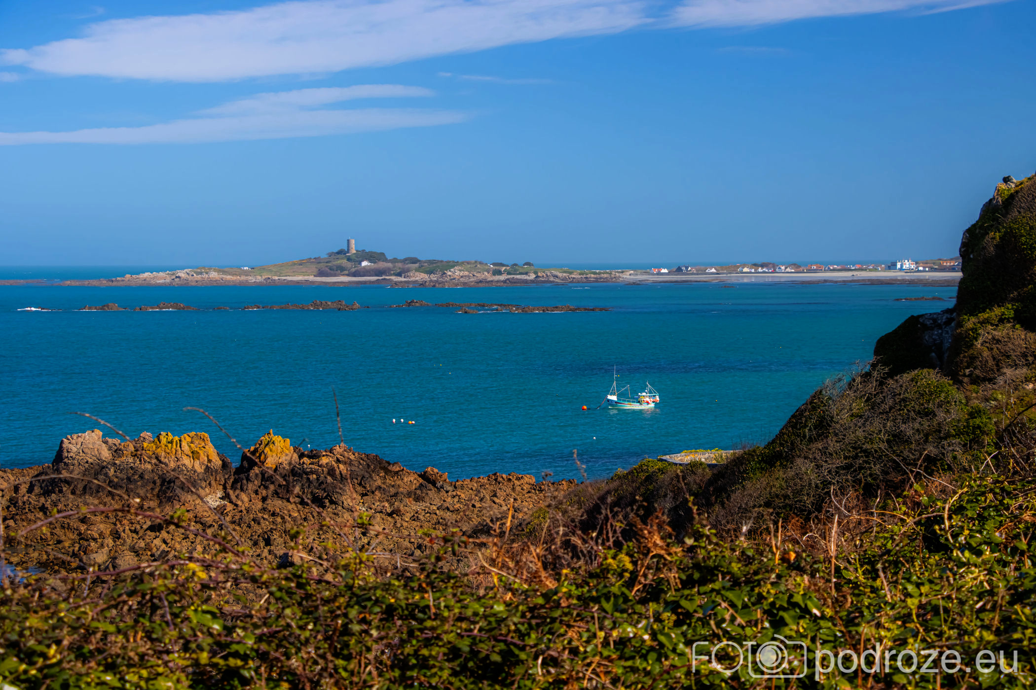 Od Fortu Pezeries warto wybrqać się dalej szlakiem na górę i niesamowity punkt widokowy. Po drodze otwierają się widoki na zatokę Portelet, klify i w oddali Fort Grey. Na szczycie rozciąga się szeroka panorama na ocean i wyspę Lihou.