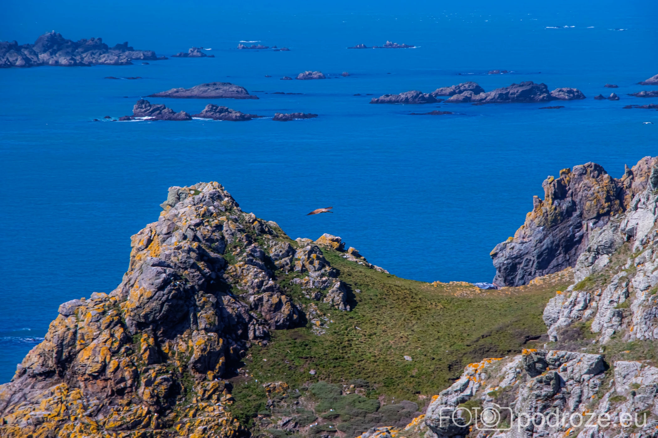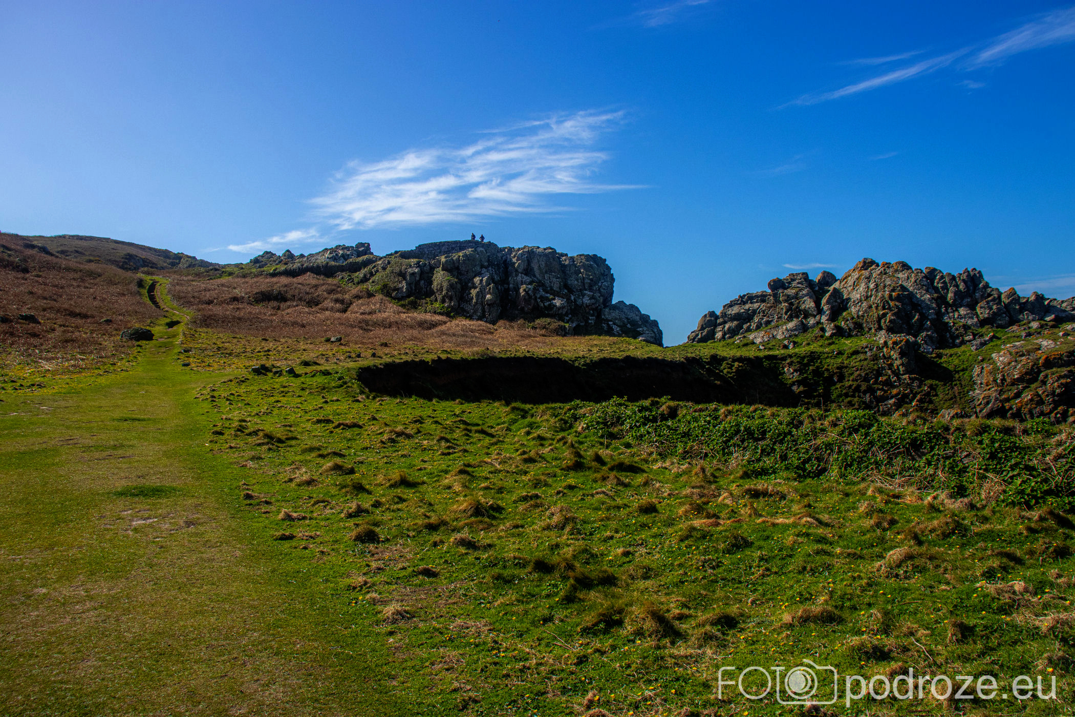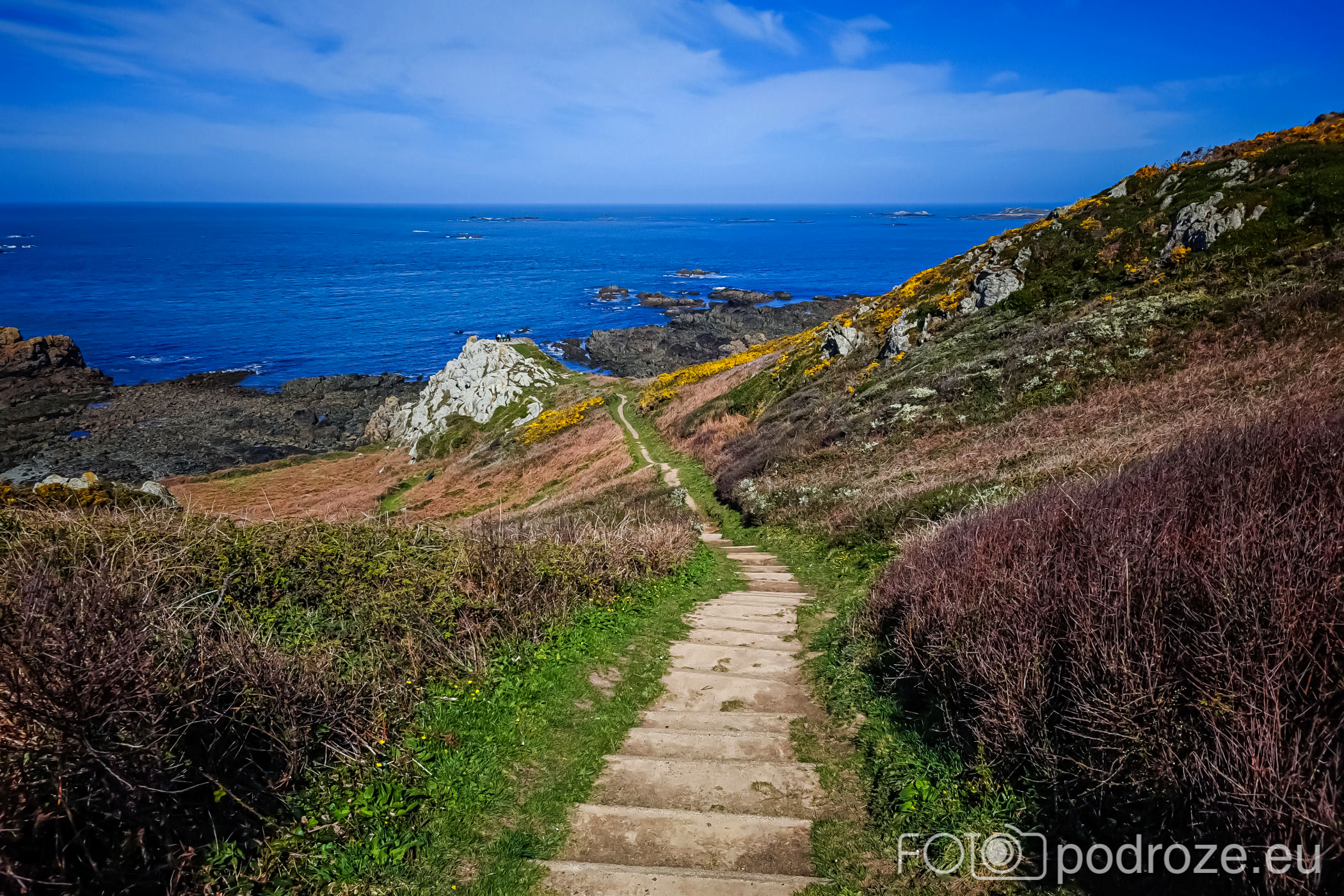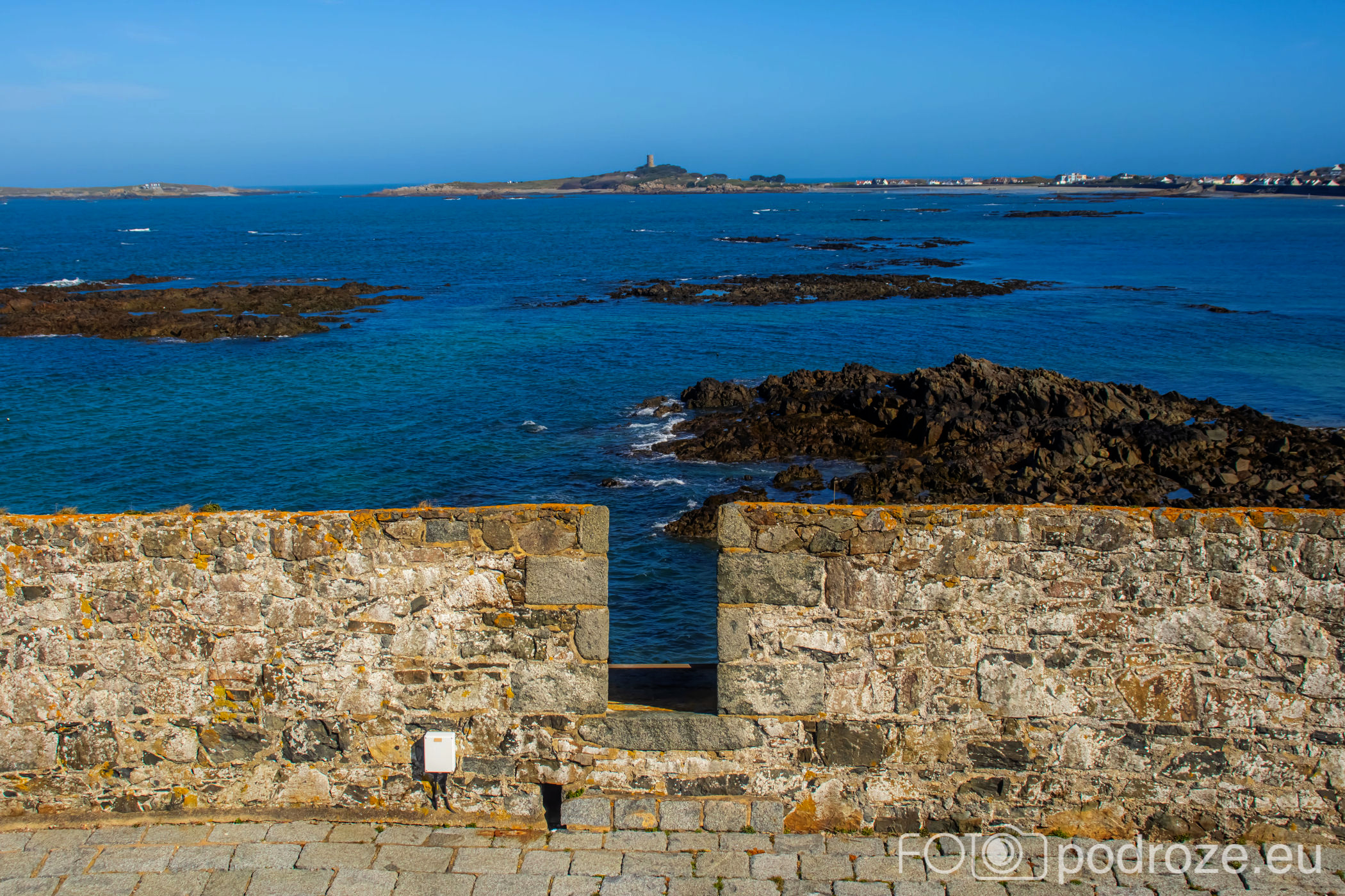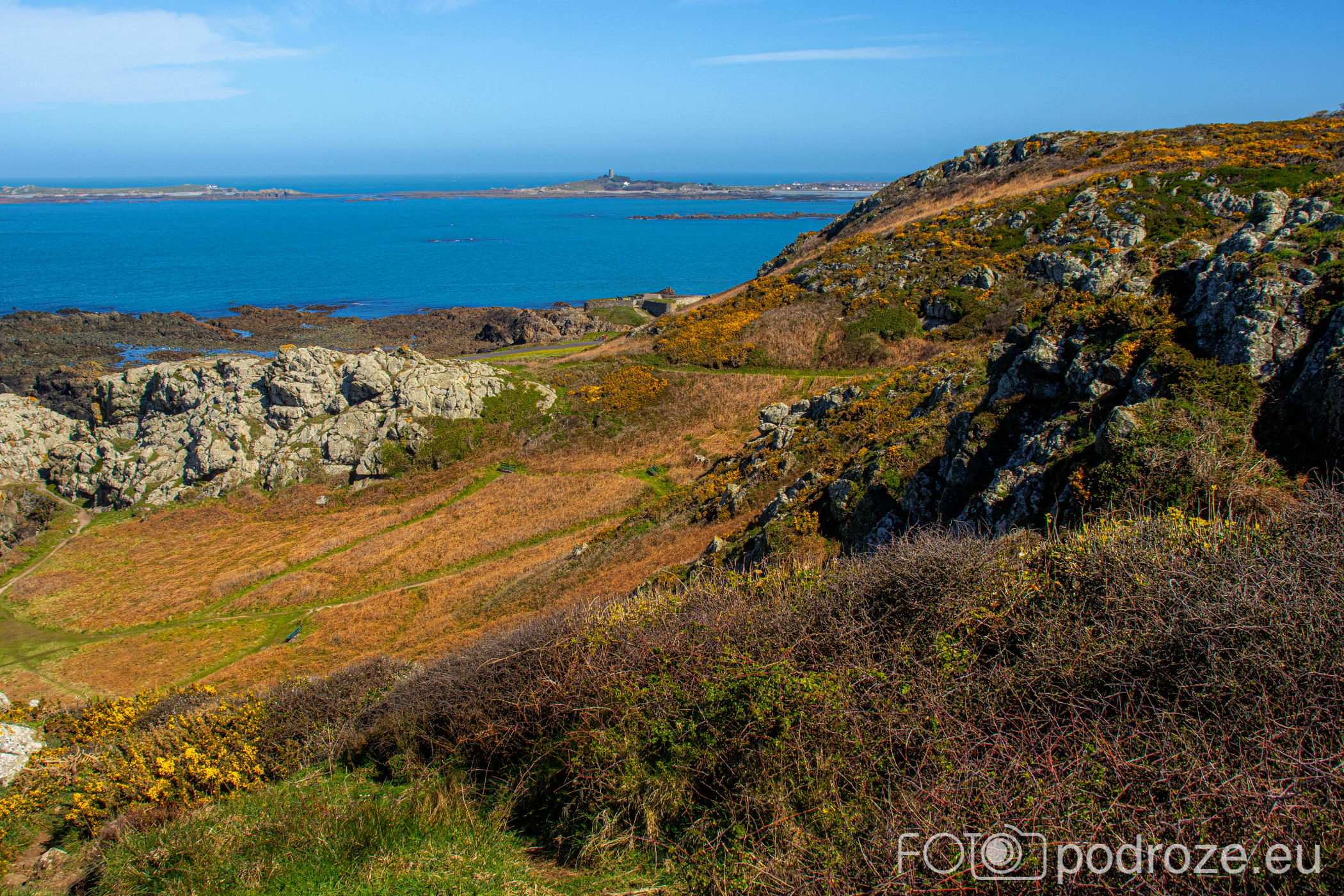 Od Fortu Pezeries warto wybrqać się dalej szlakiem na górę i niesamowity punkt widokowy. Po drodze otwierają się widoki na zatokę Portelet, klify i w oddali Fort Grey. Na szczycie rozciąga się szeroka panorama na ocean i wyspę Lihou.