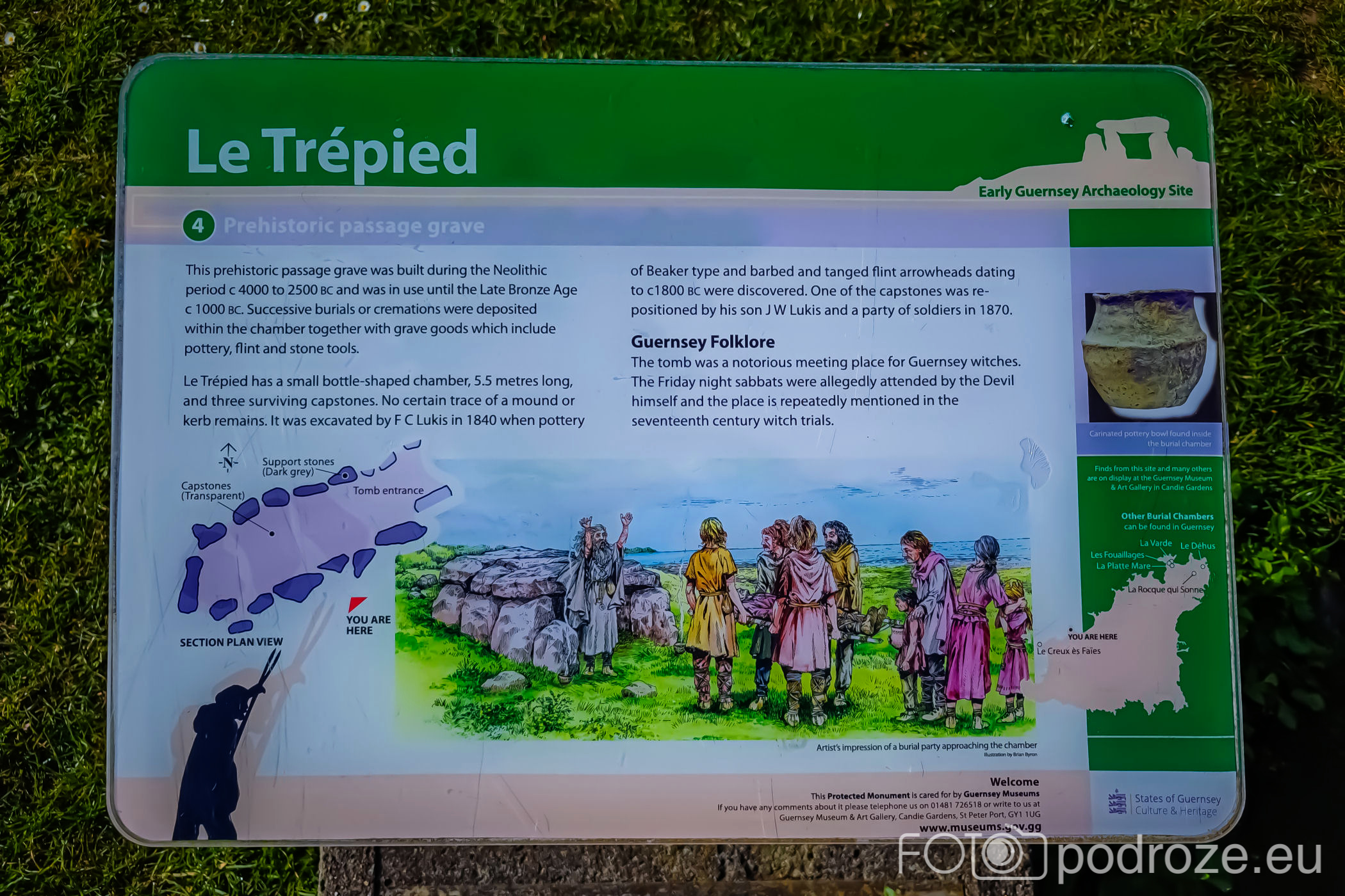 To jedno z najbardziej fascynujących stanowisk archeologicznych wyspy. Ten prehistoryczny dolmen, czyli kamienna konstrukcja grobowa z epoki neolitu, jest cennym świadectwem życia i wierzeń pierwszych mieszkańców Guernsey sprzed ponad 4 tysięcy lat. Le Trépied składa się z dużych, ustawionych pionowo głazów podtrzymujących płaski kamień stropowy. Dawniej sądzono, że był to ołtarz druidów, jednak dziś wiemy, że służył jako miejsce pochówku, prawdopodobnie dla członków ważnych społeczności.