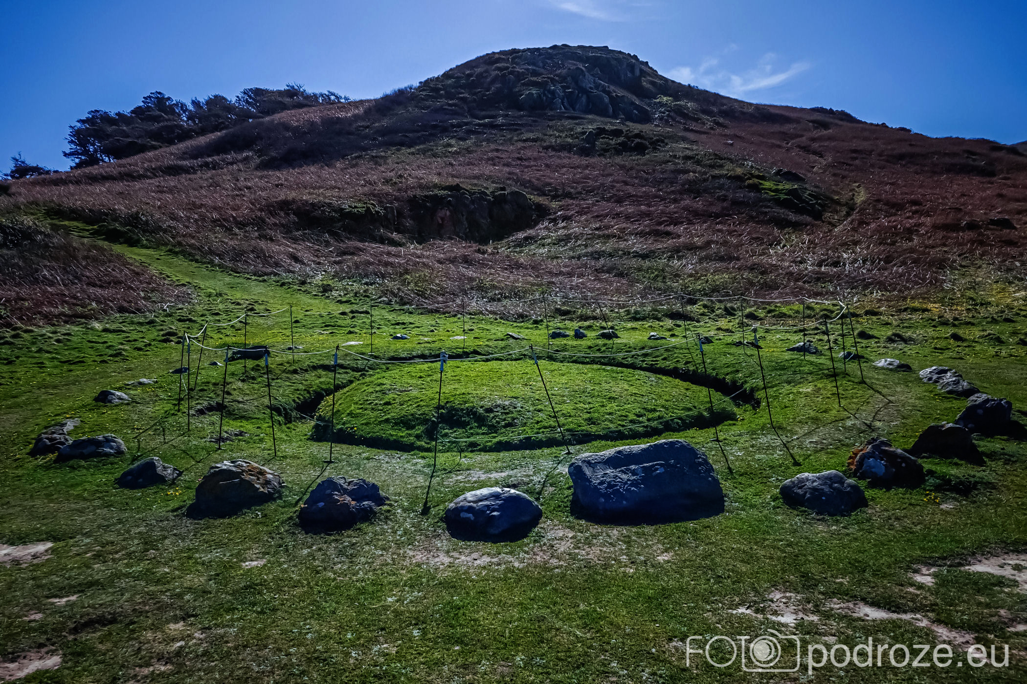 Tuż koło fortu, ale bliżej wzgórza znajduje się jedno z najbardziej tajemniczych miejsc na Guernsey. Miejsce to otacza aura legend i historii, sięgających zarówno czasów celtyckich, jak i okresu napoleońskiego. Nazwa Fairy Ring -„Krąg wróżek” pochodzi od idealnie kolistego układu kamiennych siedzisk otaczających niski centralny kopiec. Według lokalnych legend, w nocy spotykały się tu wróżki lub duchy natury, tańczące w kręgu przy świetle księżyca. Dawniej wierzono, że kto usiądzie w środku, może zniknąć lub zostać porwany przez magiczne istoty. Druga nazwa tego miejsca „Table des Pions” odnosi się do stołu, przy którym spotykać się mieli urzędnicy królewscy, odpowiedzialni za podział wspólnej ziemi i organizację robót publicznych na Lihou Common. Kamienny krąg prawdopodobnie pochodzi z XVIII–XIX wieku, ale istnieją przypuszczenia, że wcześniej mogło tu znajdować się celtyckie lub megalityczne miejsce kultu