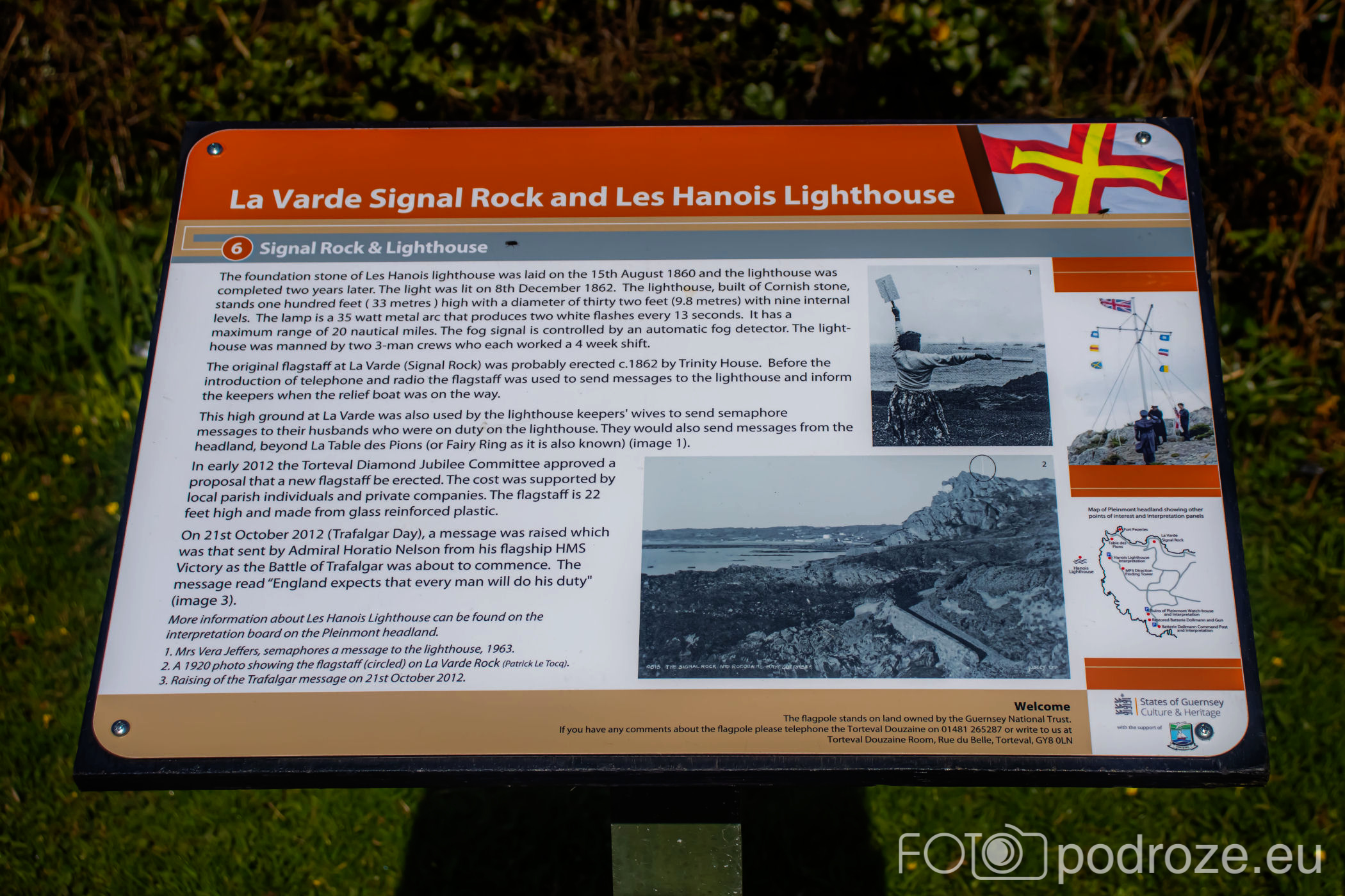 Idąc w stronę fortu i wracając potem do portu górami mijamy charakterystyczną skałę z masztem. To maszt nawigacyjny, który dawniej służył jako punkt sygnalizacyjny dla żeglarzy i rybaków. Umieszczony na niewielkim wzniesieniu nad zatoką, pełnił funkcję orientacyjną. Jego widoczność z morza pomagała jednostkom wracającym do portu zlokalizować bezpieczne wejście do zatoki. Dziś maszt jest nie tylko pamiątką dawnego systemu nawigacji, ale także charakterystycznym elementem krajobrazu zachodniego wybrzeża Guernsey.