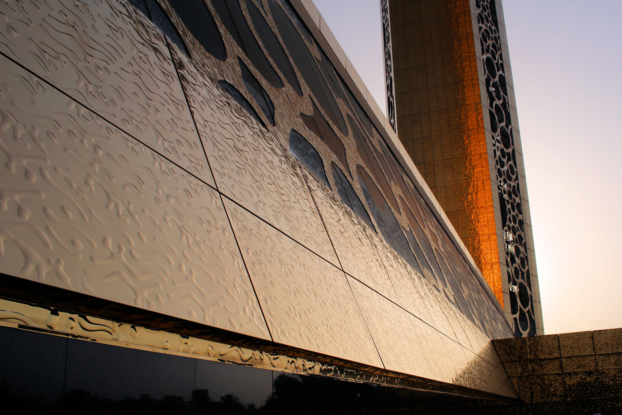 Dubai Frame jak przystało na prawdziwą ramę jest złota, a w promieniach zachodzącego słońca wygląda na prawdę ciekawie. Aby móc wejść do jej wnętrza i wjechać na górny poziom trzeba odstać w dwóch kolejkach (do kasy, a potem do windy) – rama od czasu otwarcia stała się bardzo popularna. W czasie kiedy oczekujemy na swój wjazd zachodzi słońce. Wizytę jednak polecam , mimo czasu oczekiwania i ceny (50AED).
