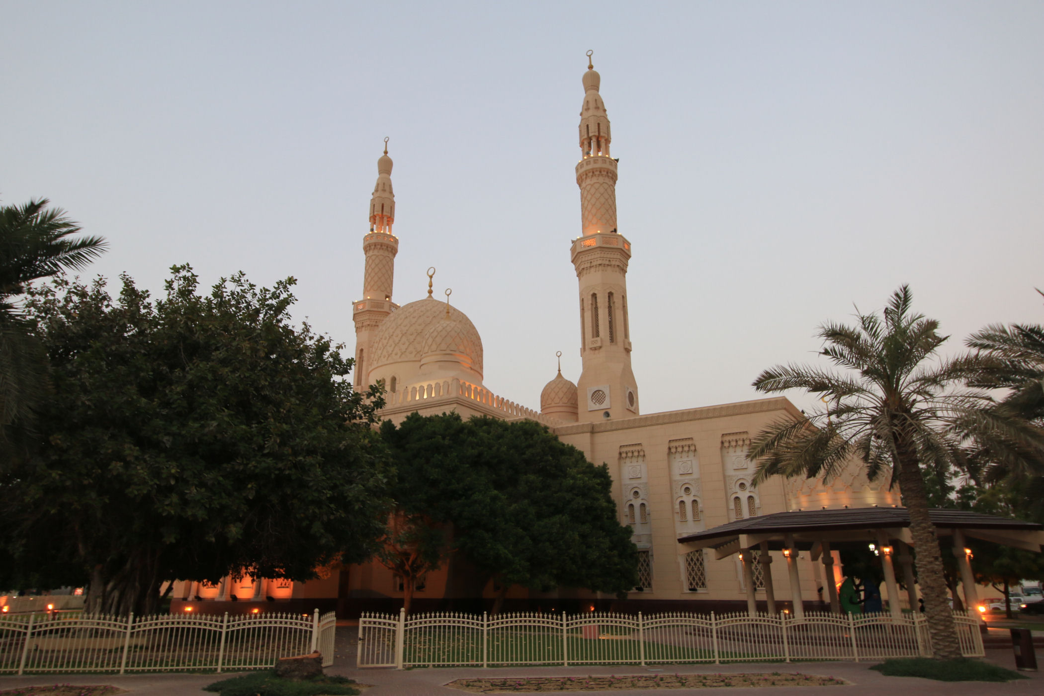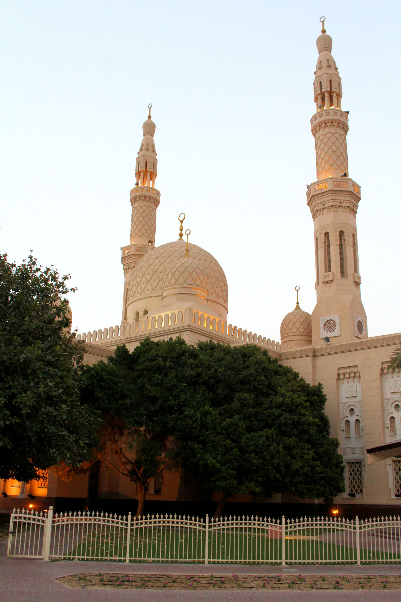 Jak wiemy – Emiraty są prawie w 100% wyznania islamskiego. Nieodłącznym elementem krajobrazu są więc meczety. Jest ich mnóstwo, na peryferiach miasta stoją na otwartej przestrzeni, a w centrum są wciśnięte między wysokościowce. Największy meczet Dubaju nie jest tak imponujący jak ten w Abu Zabi – to Meczet Jumeirah . Wybudowany w 1998 roku stanowi przykład nowoczesnej architektury islamskiej. Meczet wzniesiono z białego kamienia, ma dużą centralną kopułę i posiada dwa minarety.