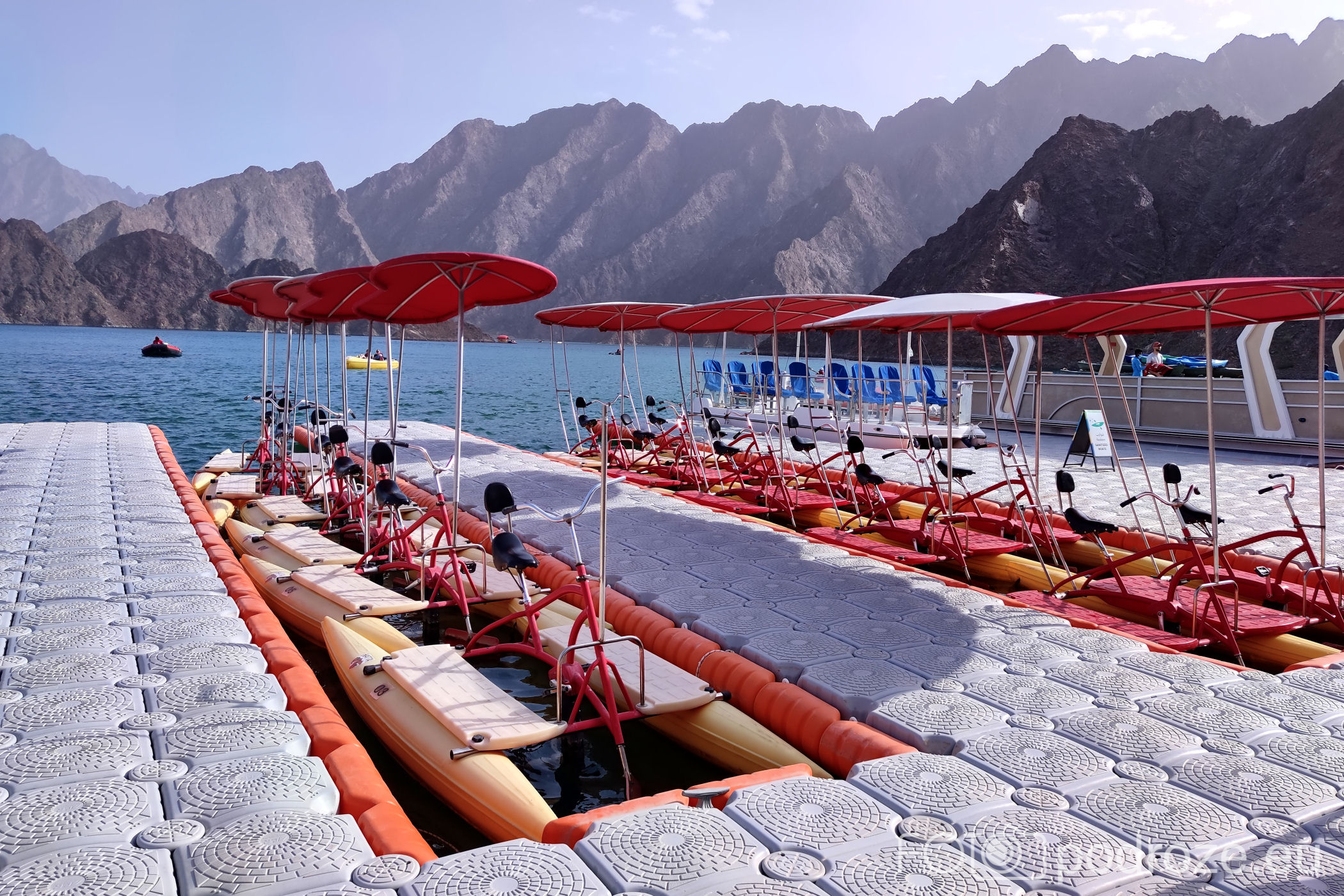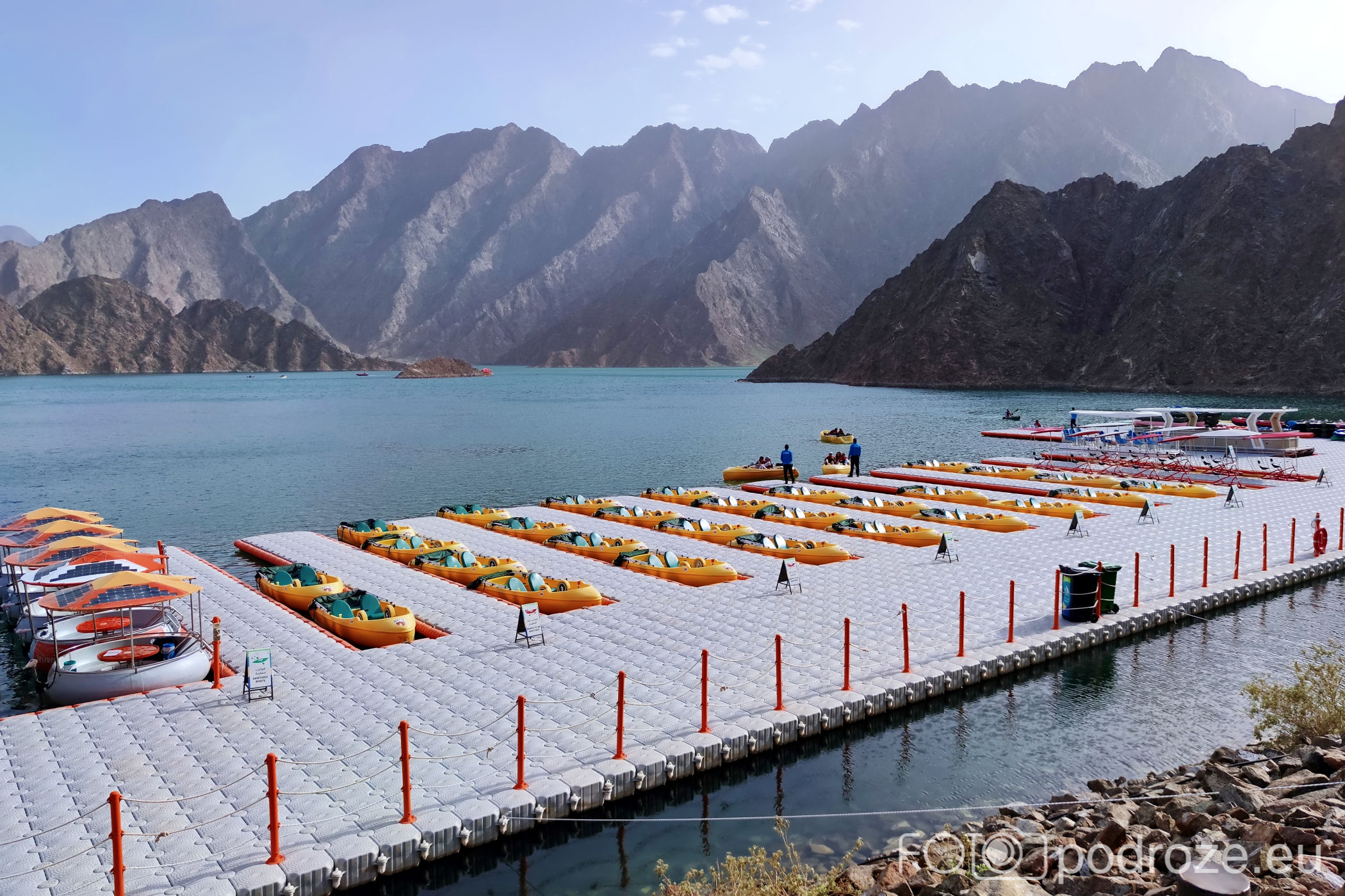 Po prawej stronie zapory widzimy porcik oferujący całą gamę wodnych atrakcji : przez kajaki, rowery wodne, łodzie i pontony w różnych kształtach. Długo się zastanawiamy nad opcją wyboru, zwiedzanie jeziora z poziomu wody wydaje się dość atrakcyjnym choć ceny troszkę odstraszają.