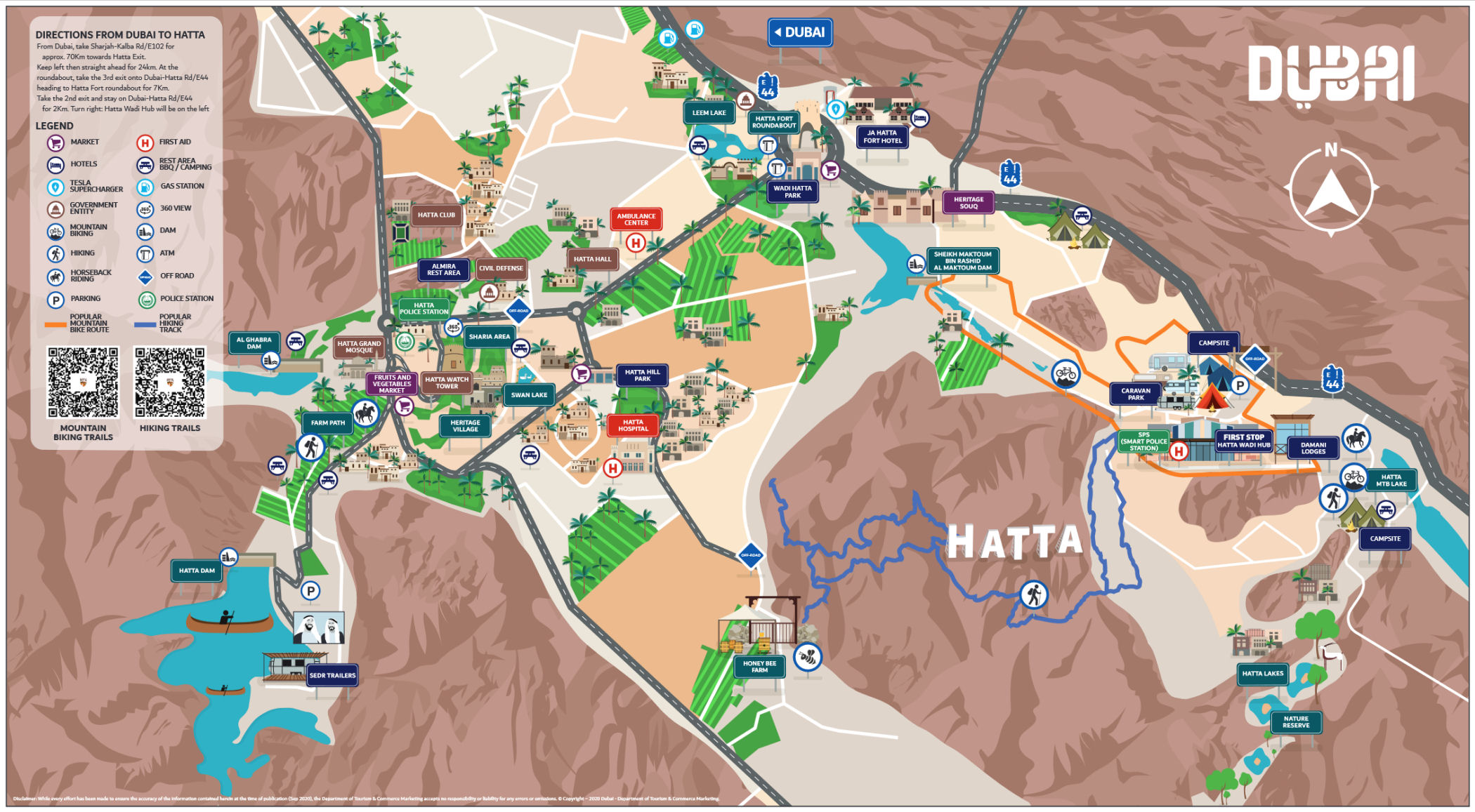 Warto wiedzieć, że góry Al- Hadżar gdzie umiejscowione są opisywane tu miejsca znajdują się na Półwyspie Arabskim, w jego południowo-wschodniej części i ciągną się przez około 480 km jakieś 50-100 km od wybrzeża Zatoki Omańskiej. Łańcuch górski Al-Hadżar znajduje się głównie na na terytorium Omanu, a tylko częściowo w Zjednoczonych Emiratów Arabskich w 4 emiratach : Adżman, Dubaju i Ras Al-Chajma i Fujarah. Samo miasteczko Hatta wraz z jeziorami przynależy do Emiratu Dubaj, choć podział na mapie świadczy o czymś innym.