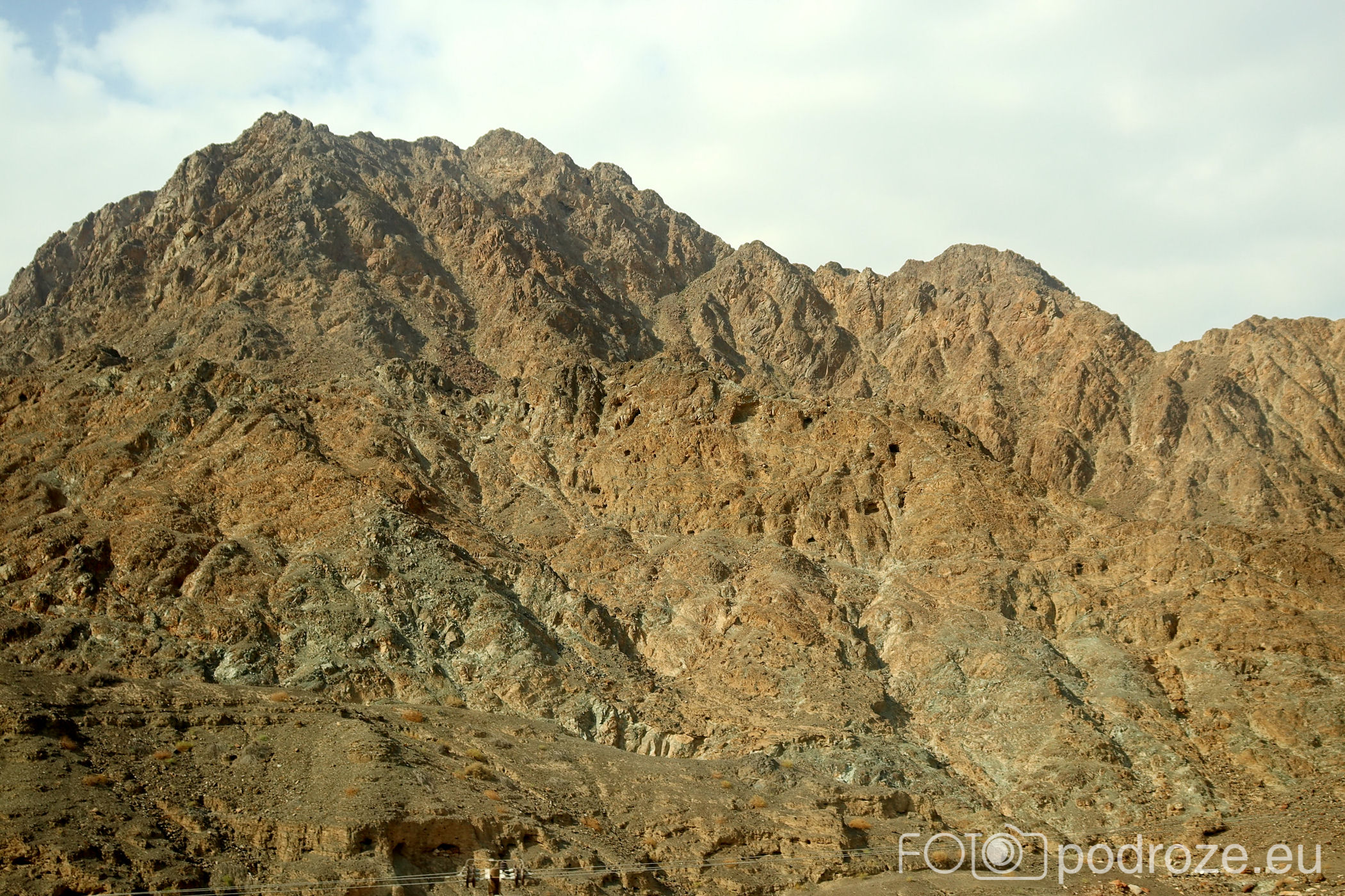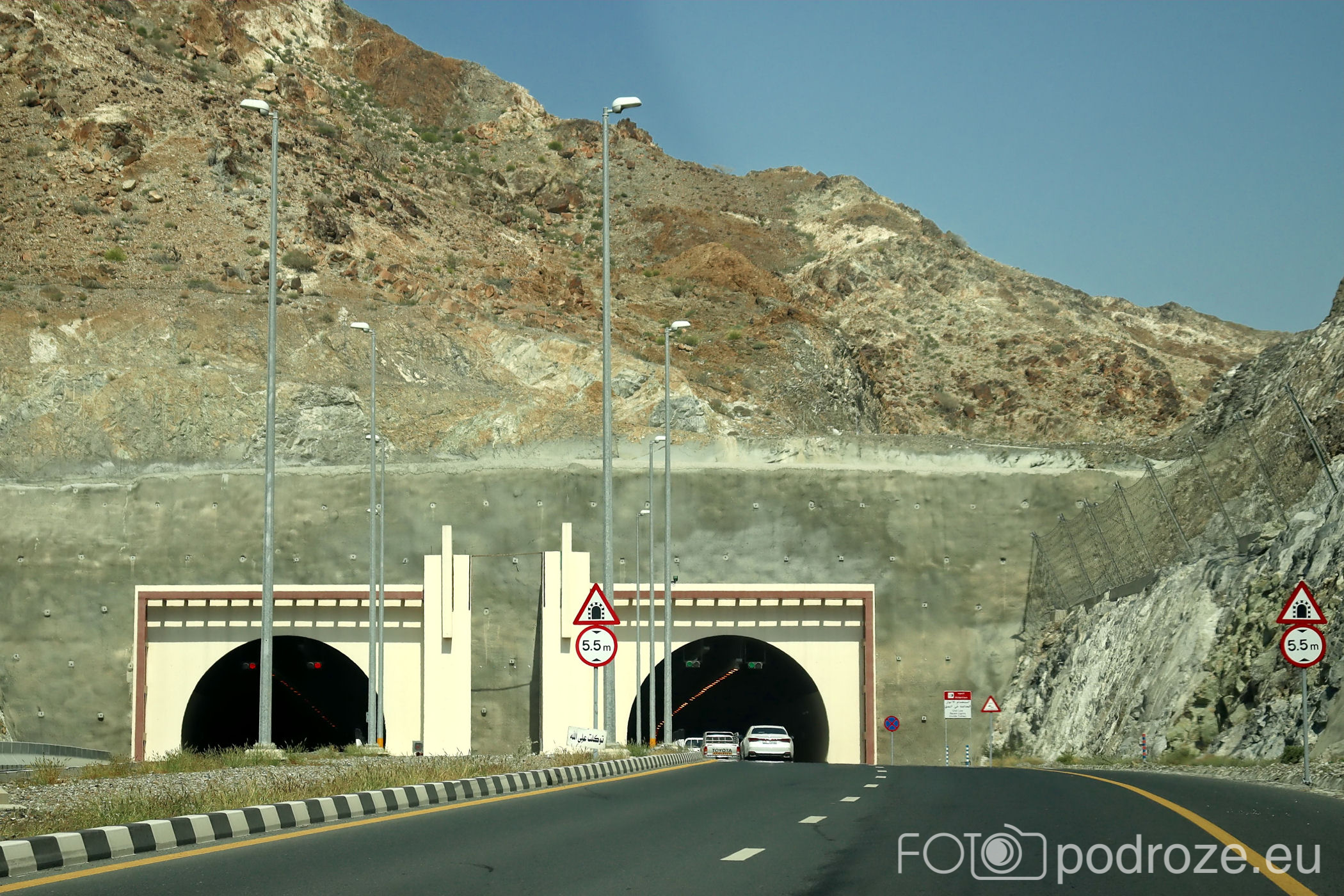 Opuszczamy miasteczko al Bidya i jedziemy dalej na północ. Surowe skaliste góry schodzą tu miejscami do samego wybrzeża, jedziemy więc tunelem. Królestwo gór tylko miejscami zajęte przez cywilizację.