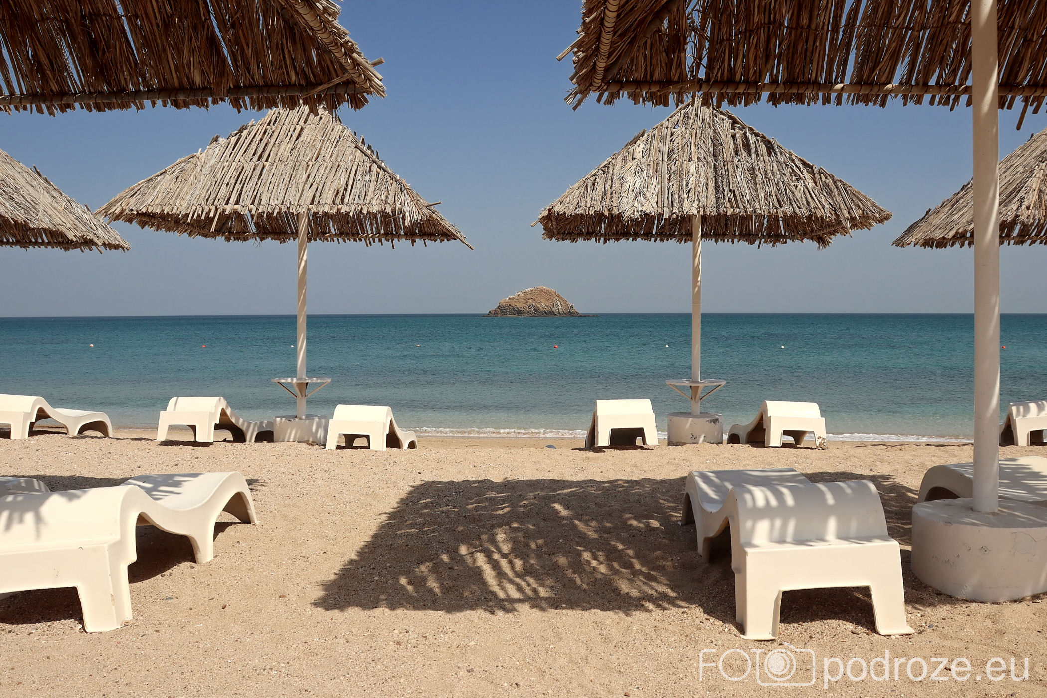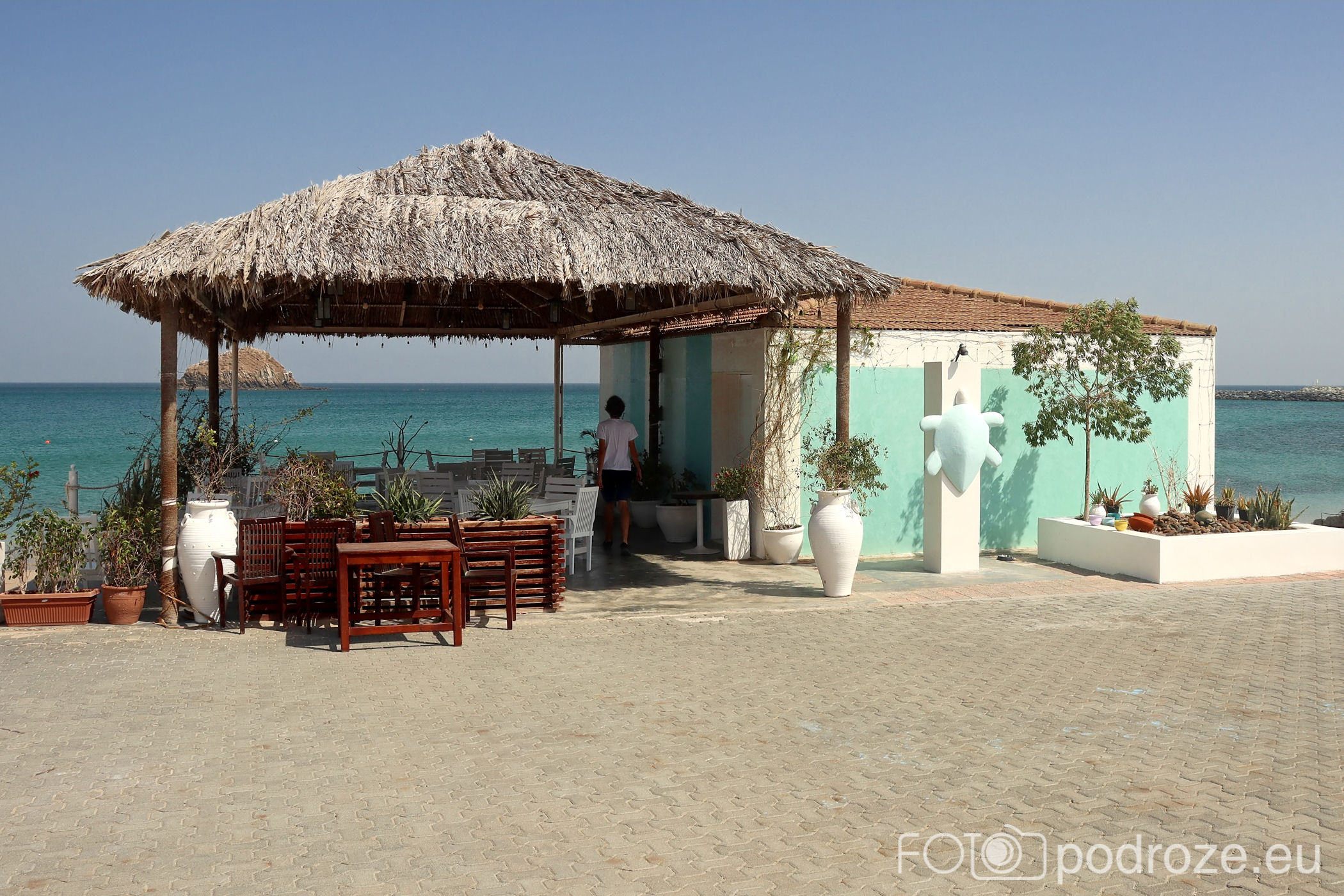 Powoli kończymy objazd wybrzeża, przed nami jeszcze objazd całego kraju w poprzek, czas więc na kawę. A jak kawa to najlepiej z widokiem na morze. Wynajduję kafejkę przy obiecująco brzmiącej plaży żółwi. Okazuje się, że jesteśmy terenie ośrodka wypoczynkowego Royal Beach Hotel & Resort. Panuje tu totalna cisza i spokój. Po za nami w ośrodku jest może z 5 osób ( niestety wyłącznie Rosjanie) . Jest wypożyczalnia sprzętu do pływania, jest centrum nurkowania . A koło wysepki Dibba , który jest rezerwatem ptaków faktycznie pływają żółwie.