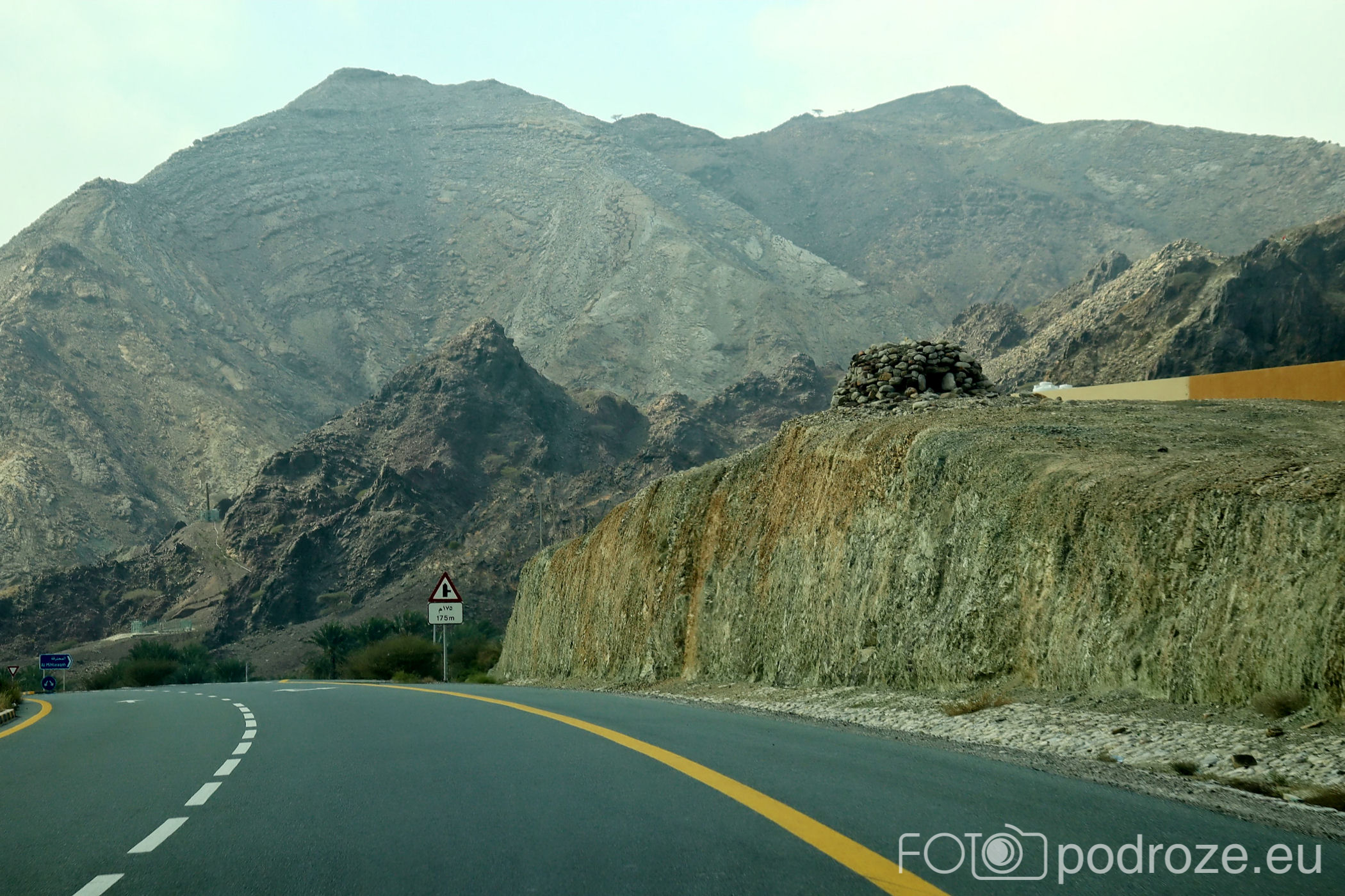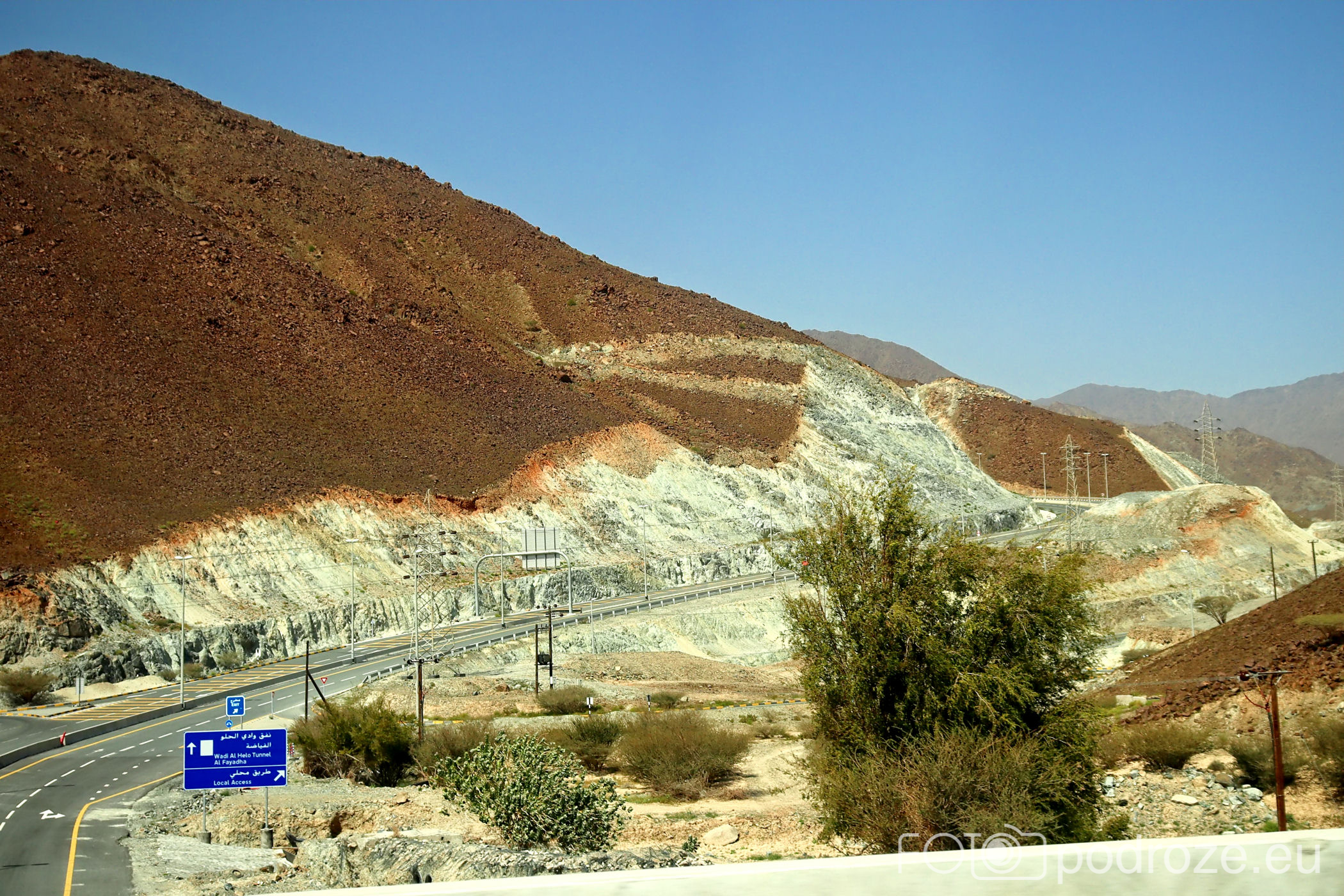 Nasze pierwsze spotkanie z górami Al Hadżar następuje kiedy wjeżdżamy do Emiratu Ras al-Chajma od strony Szardży. Już pierwsze widoki zapowiadają suche góry w ciekawych geologicznych formacjach i kolorach.