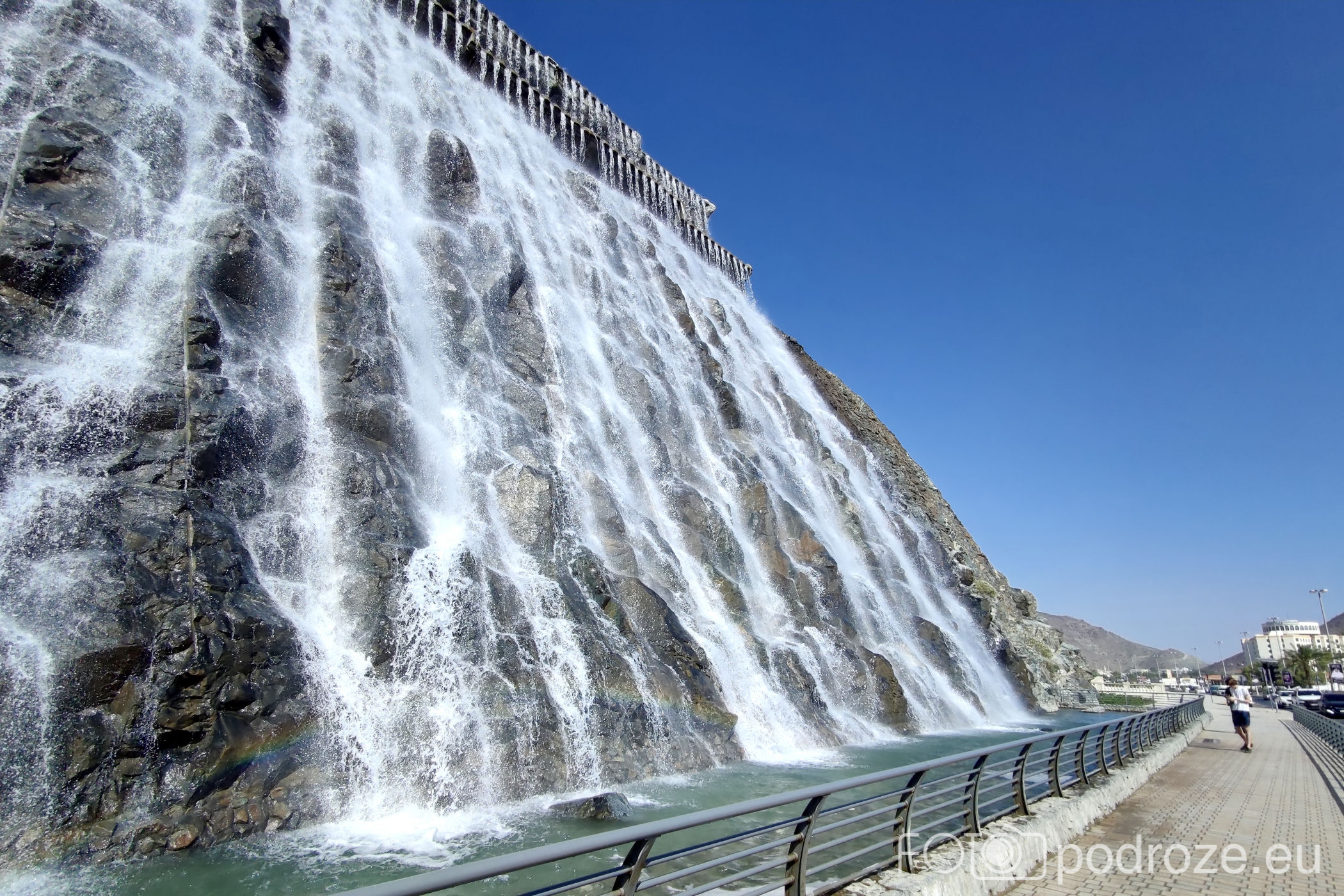 jadąc dalej na północ miast główną szosą wzdłuż wybrzeża w pewnym momencie natrafimy na coś absolutnie wyjątkowego. Może dla nas ludzi północy wodospad to nic szczególnego, ale wystarczy sobie uświadomić, ze ten został zrobiony sztucznie, na pustyni i już staje się wyjątkowy. Szejk chciał wodospad, to go ma, a czemu nie .
