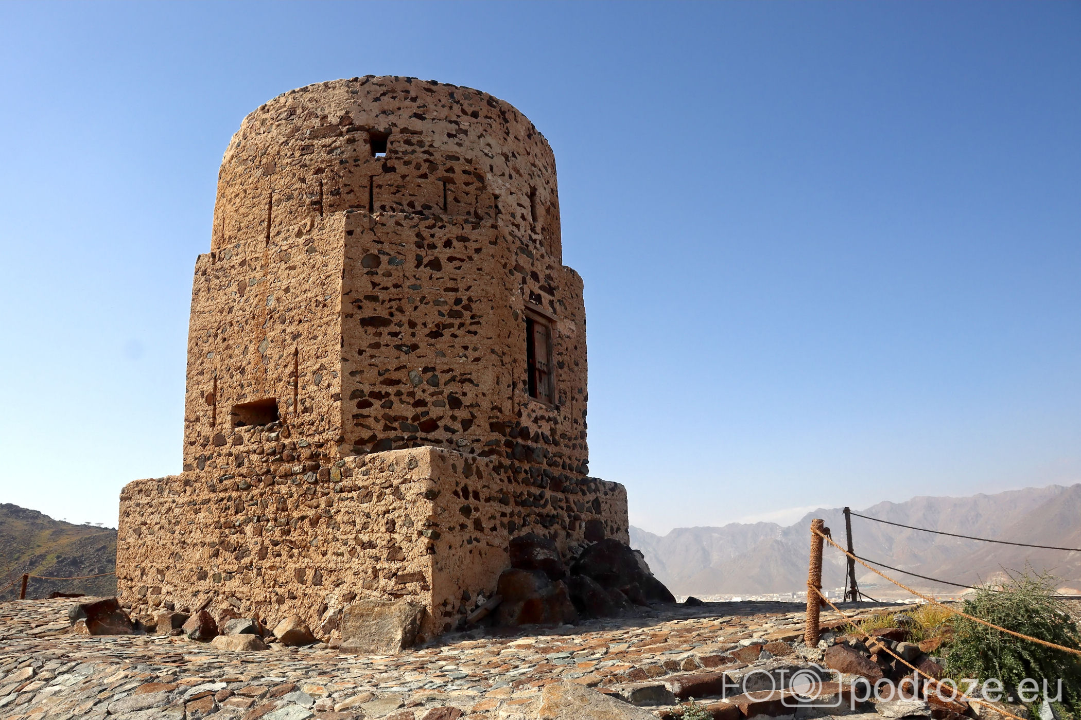 Miasto ma kilka ciekawych punktów widokowych dostępnych dla podróżujących. My zajeżdżamy po jeden z historycznych obiektów . To Al Rabi Tower znajdująca się na wzgórzu na prawo od drogi, która jest zabytkiem historycznym. Zbudowana została w 1915 roku jako część sieci obronnej Khorfakkan.
