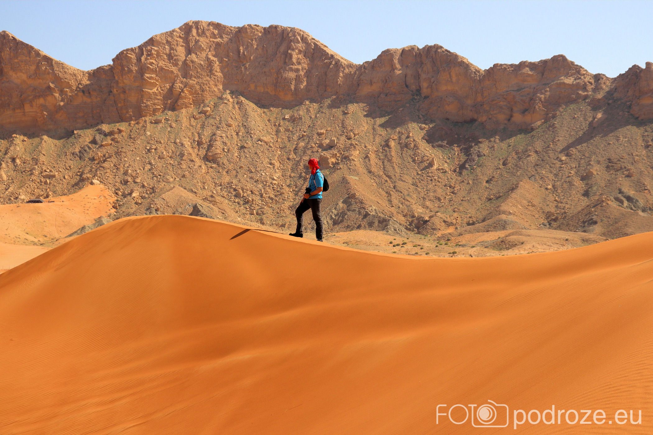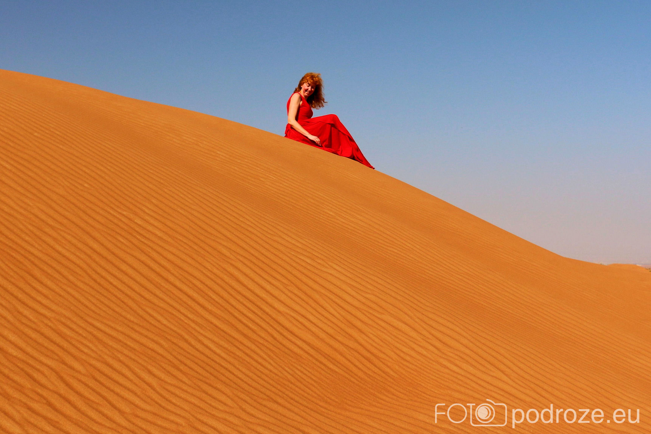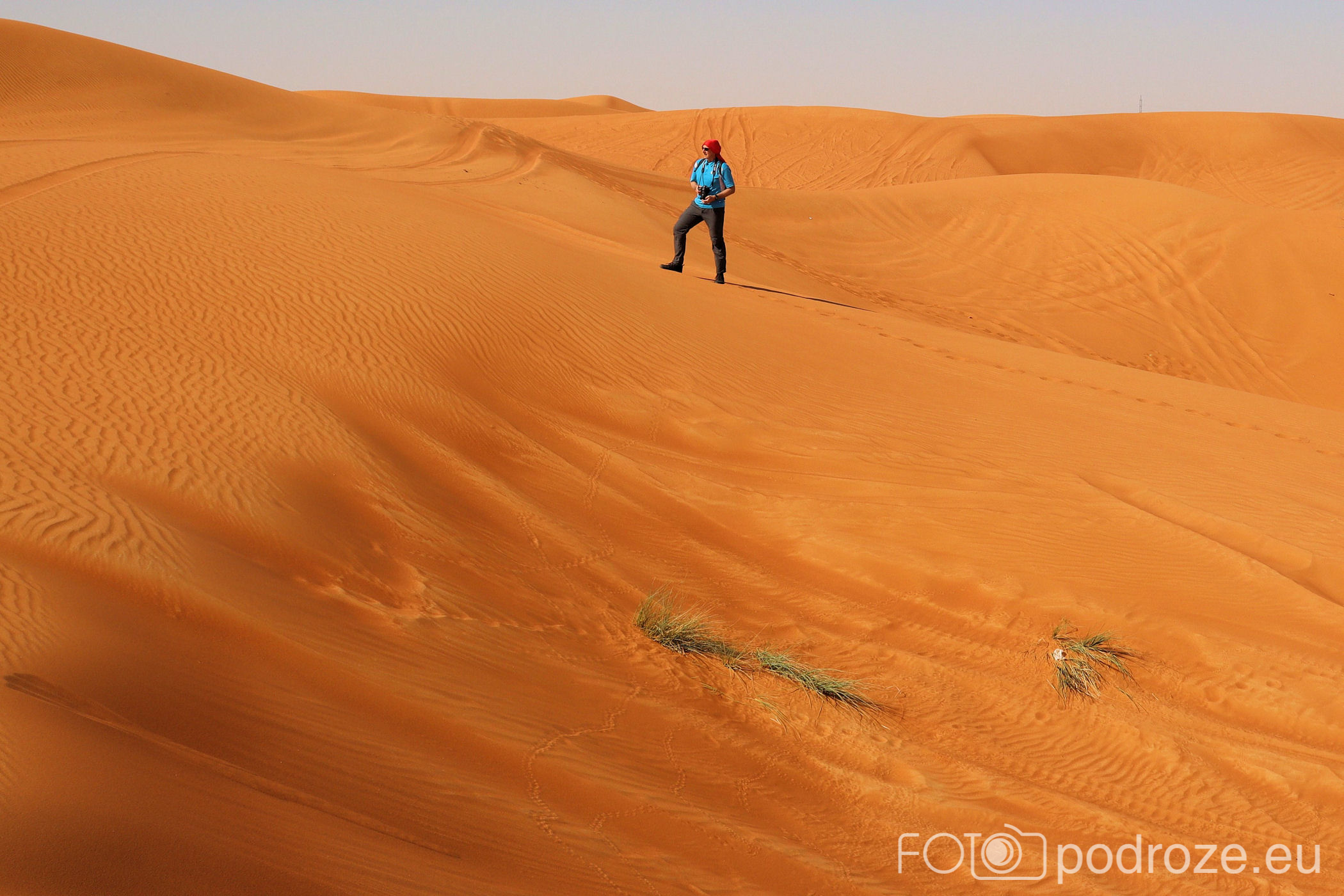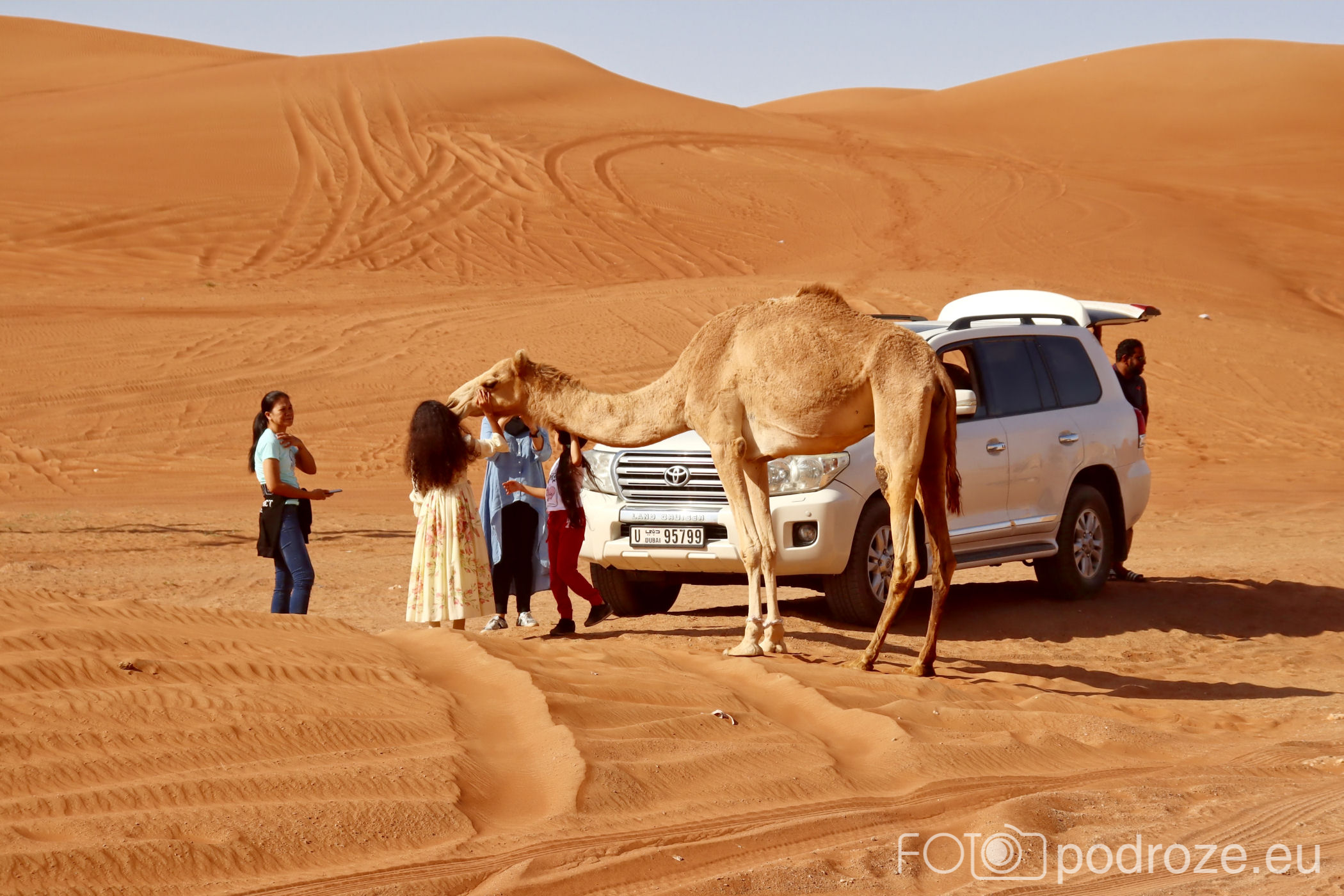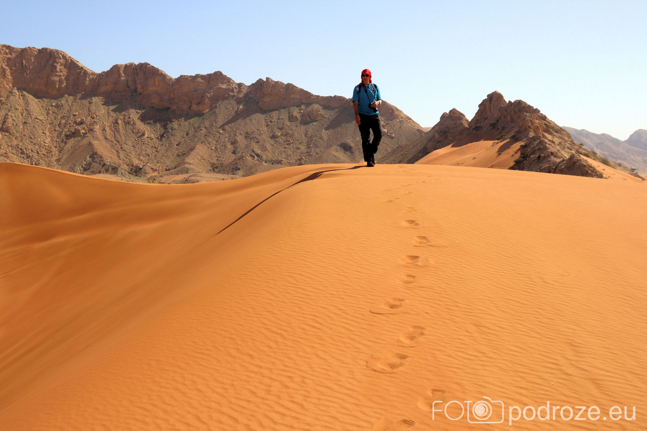 Skały są malownicze, ale to właśnie pustynne wydmy chcieliśmy zobaczyć najbardziej. Gdyby jeszcze na piasku nie było śladów kół samochodów. Ale taki już urok Emiratów, tu każdy i wszędzie jedzie i wjeżdża swoim 4×4 . Takich jak my tu nie ma, którzy cieszyli by się tym, że po piasku po prostu mogą pochodzić, albo na nim posiedzieć lub poleżeć .